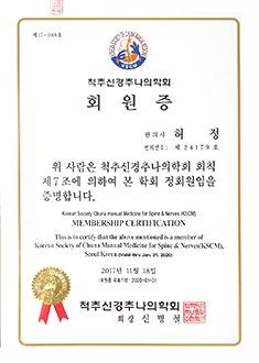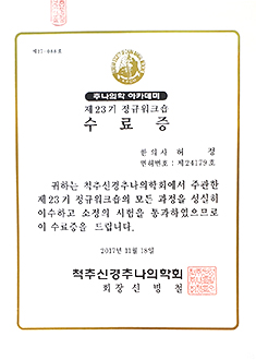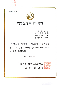 척추신경추나의학회 정회원 (2017 정규아카데미 전국우수상)